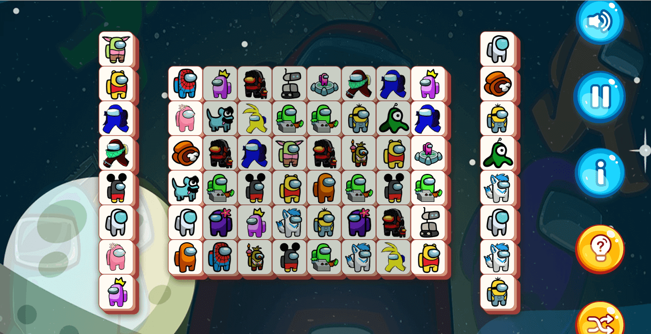 Among Mahjong Tiles is a captivating puzzle game that combines the classic mahjong rules with the popular “Among Us” theme. This free online game challenges players to match pairs of identical tiles featuring characters from the “Among Us” universe. With its engaging gameplay, pleasant music, and user-friendly interface, Among Mahjong Tiles offers a delightful experience for both casual and seasoned players. Enjoy this browser-based game on your desktop or mobile device, and immerse yourself in the fun of tile-matching puzzles.