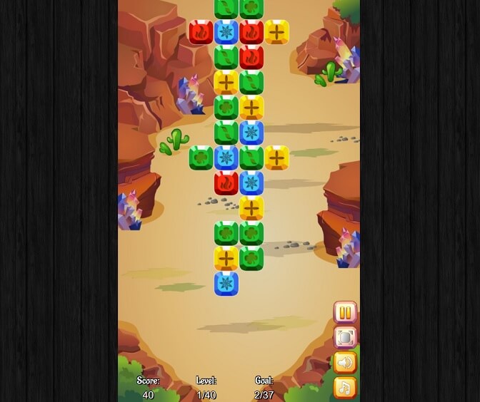 - Clear all tiles before they reach the bottom to win the game.